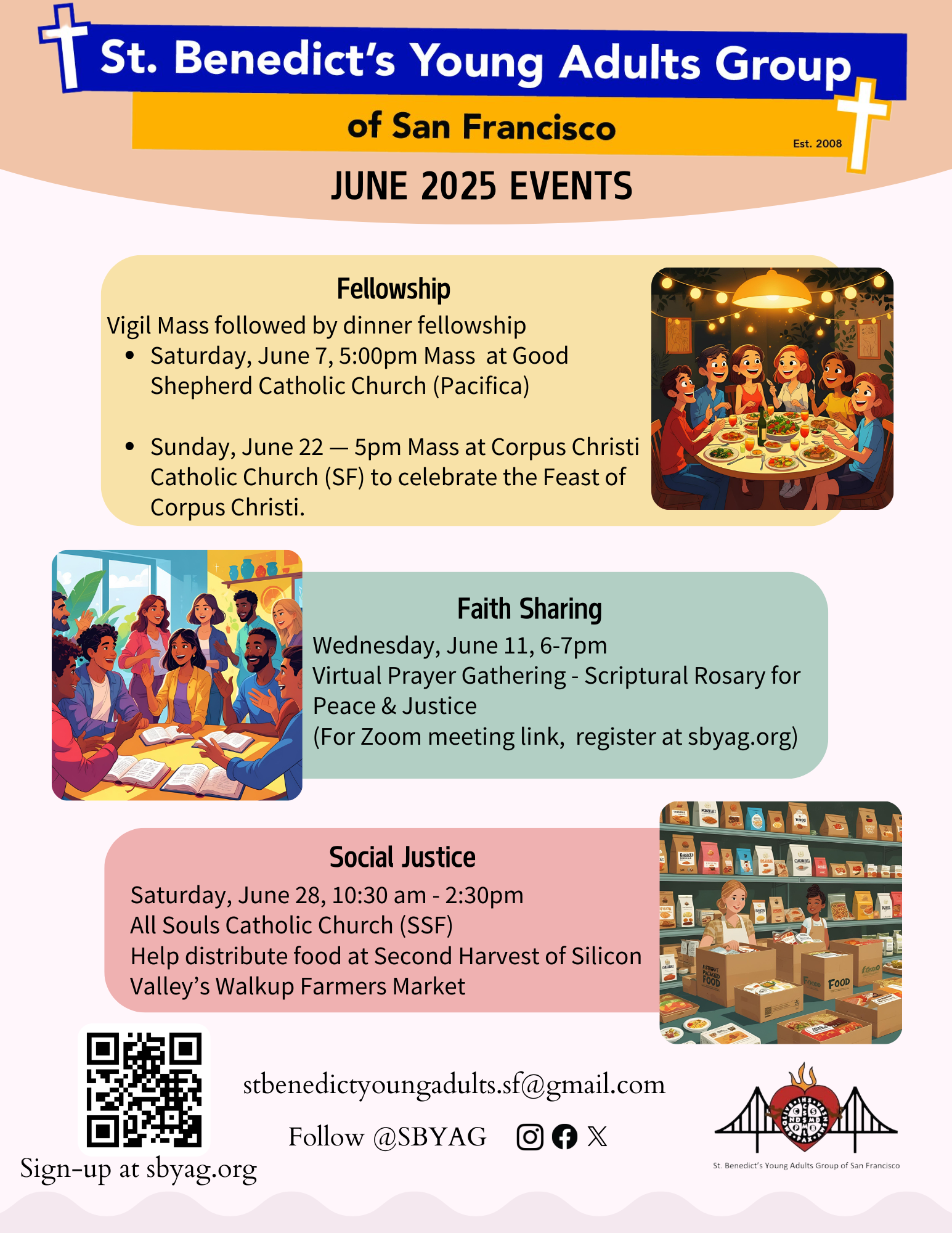 For more info, contact us at: stbenedictyoungadults.sf@gmail.com